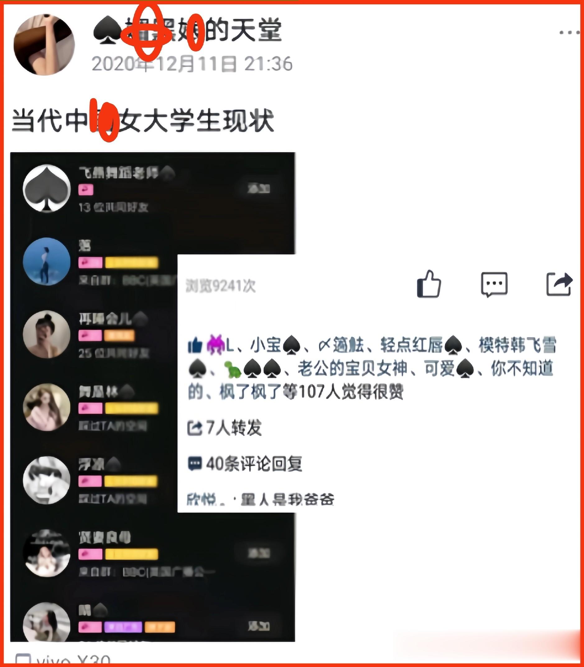 有些甚至以社团的名义,公开在社交媒体招募,从图中内容大致可以知晓,有相当多的女生,正在积极加好友,带有特殊符号的黑桃,她们渴望加入这种party,带有特殊含义的黑桃,是她们的入场券。