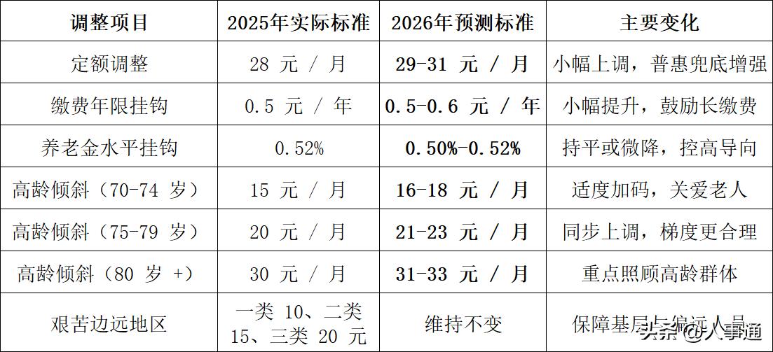 一、公布时间与补发安排结合河北近 5 年发布规律:2022-2025 年均在7 月中下旬公布细则,2025 年 7 月 28 日发布、7 月 31 日前完成补发,节奏十分稳定。综合判断:国家层面通知预计6-7 月公布;河北本地方案大概率7 月下旬发布;2026 年 1 月 1 日起执行新标准,7 月底前完成 1-7 月差额补发,8 月起按新待遇正常发放; 整体涨幅预计在1.5%-2%温和区间,延续稳中有调思路。