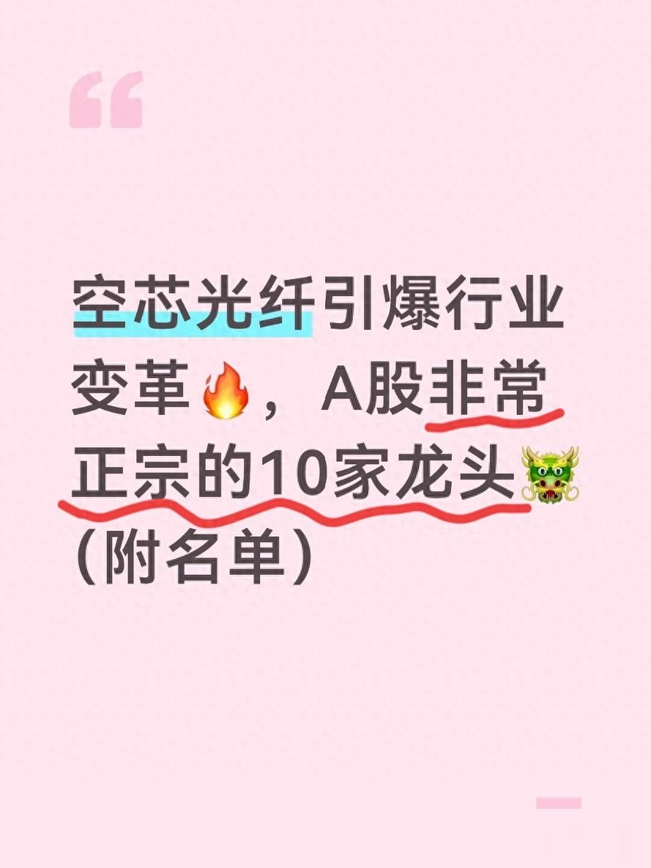 对我们普通投资者和行业人来说,空芯光纤是2026-2028年最确定的科技主线之一。未来2年,是龙头业绩释放、估值重塑的黄金阶段,选对真正有技术、有产能、有订单的公司,才能吃满这波时代红利。