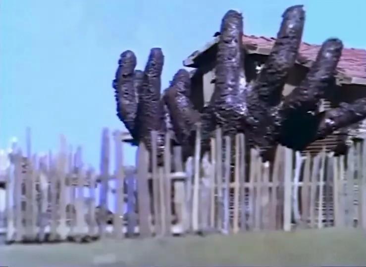 这还不算完,随后地下破土而出伸出一双巨手,将房子和姑娘撕得粉碎!