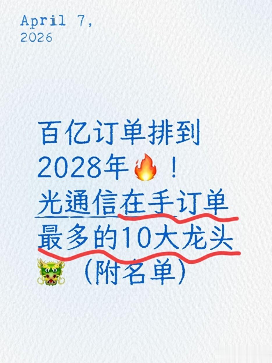 今天,我就结合最新、最硬核的产业链订单数据,给大家深度拆解光通信产业十大核心龙头企业。这些公司不是概念炒作,而是手握几十亿、几百亿真金白银的订单,排产甚至排到了2027、2028年,客户全是英伟达、微软、亚马逊这种全球顶级巨头。