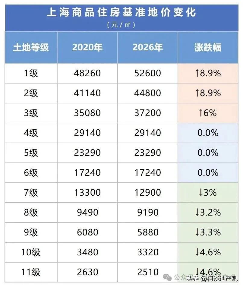 最新公布的2026年商品住宅基准地价相对于2020地价出现了以下变化: