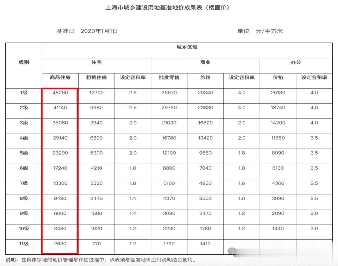 当然了,上海核心板块的土地出让价远远不止4-5万,比如去年徐汇滨江楼板价已经突破13万/平,徐家汇楼板价已经突破20万/平。