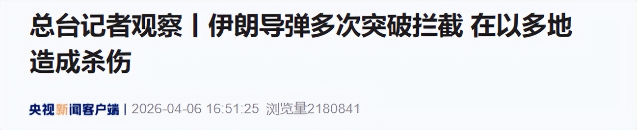 总台记者观察丨伊朗导弹多次突破拦截在以多地造成杀伤——央视新闻