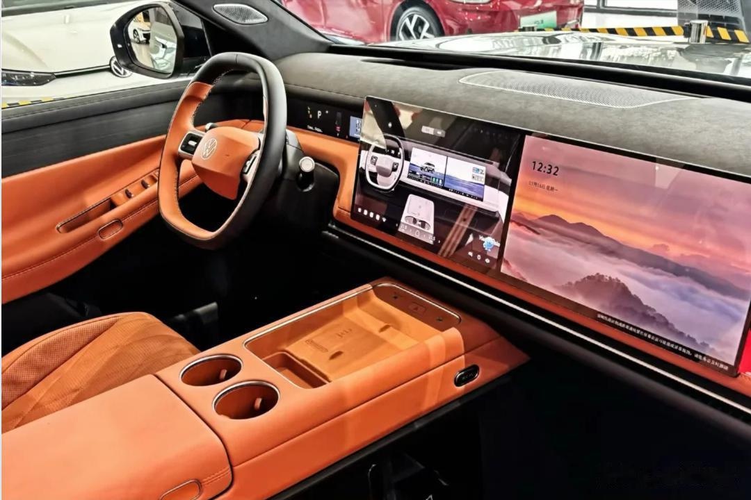 内饰:简洁却不简单,配置亮点多车内部分我们刚才体验了一下:内饰设计简洁却不简单。你在哪台大众车上见过双 15.6 英寸联屏?后排还有吸顶娱乐屏。配置方面,氛围灯、抬头显示、无线充电一应俱全。两侧门板上还设计了类似投影的屏幕,高级感拉满,可以在上面调整座椅、空调以及冰箱的功能设置。