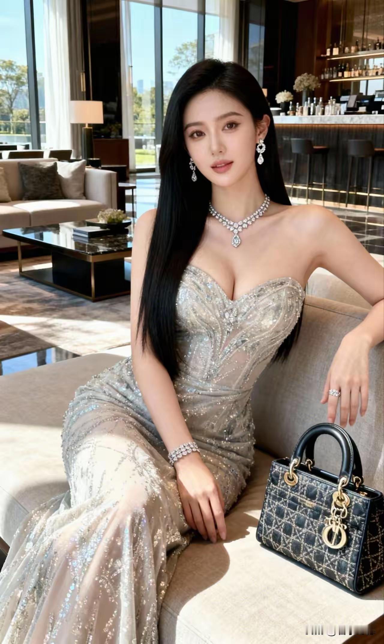 闪耀银裙,车内优雅自拍,时尚与奢华的完美结合!