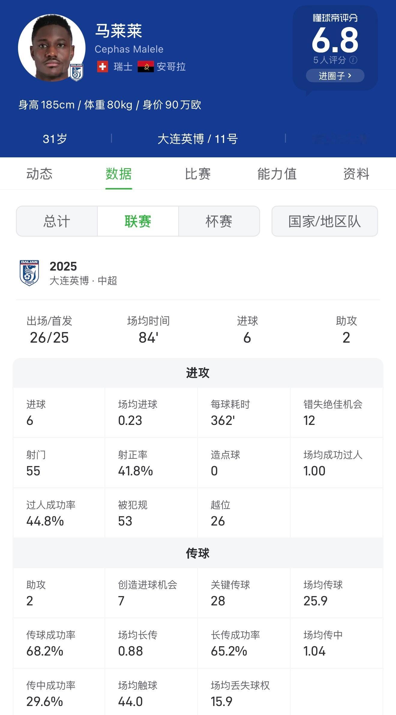 几个与大连英博有关的数据。吕焯毅入选最佳阵容,在抢断、拦截等数据方面表现出色。大
