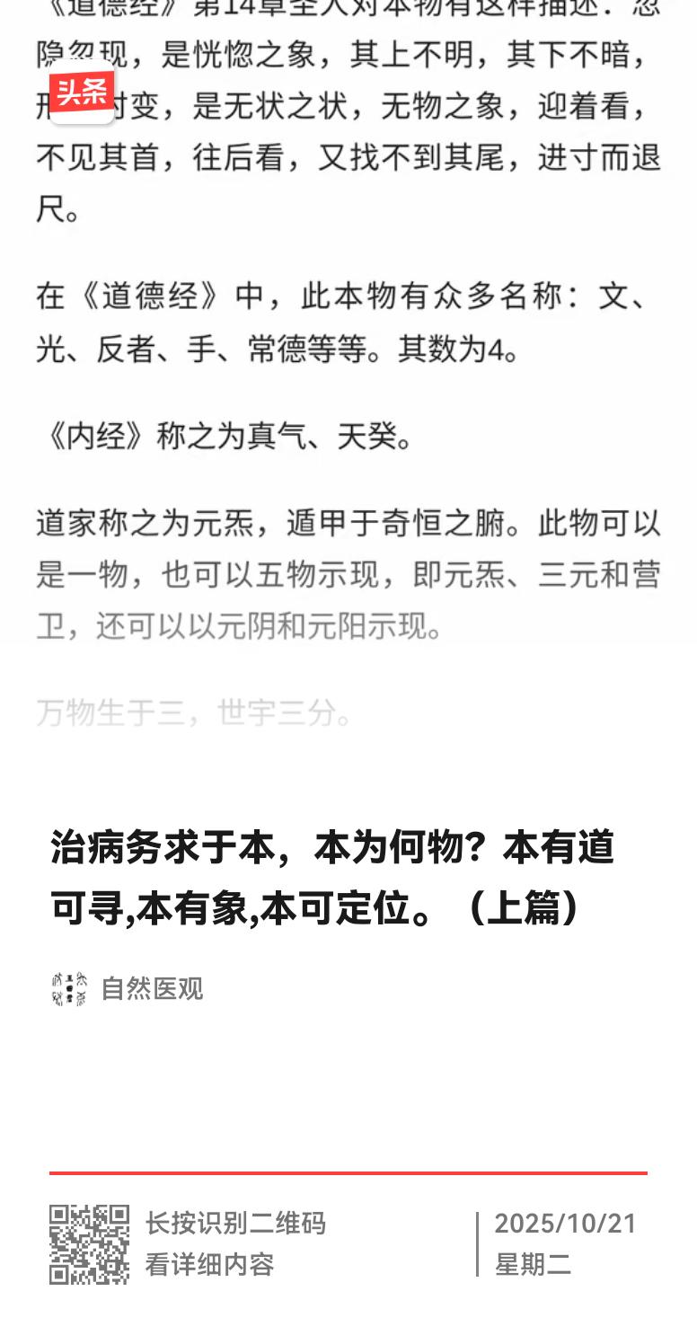 治病务求于本,本为何物?本有道可寻,本有象,本可定位。(上篇)