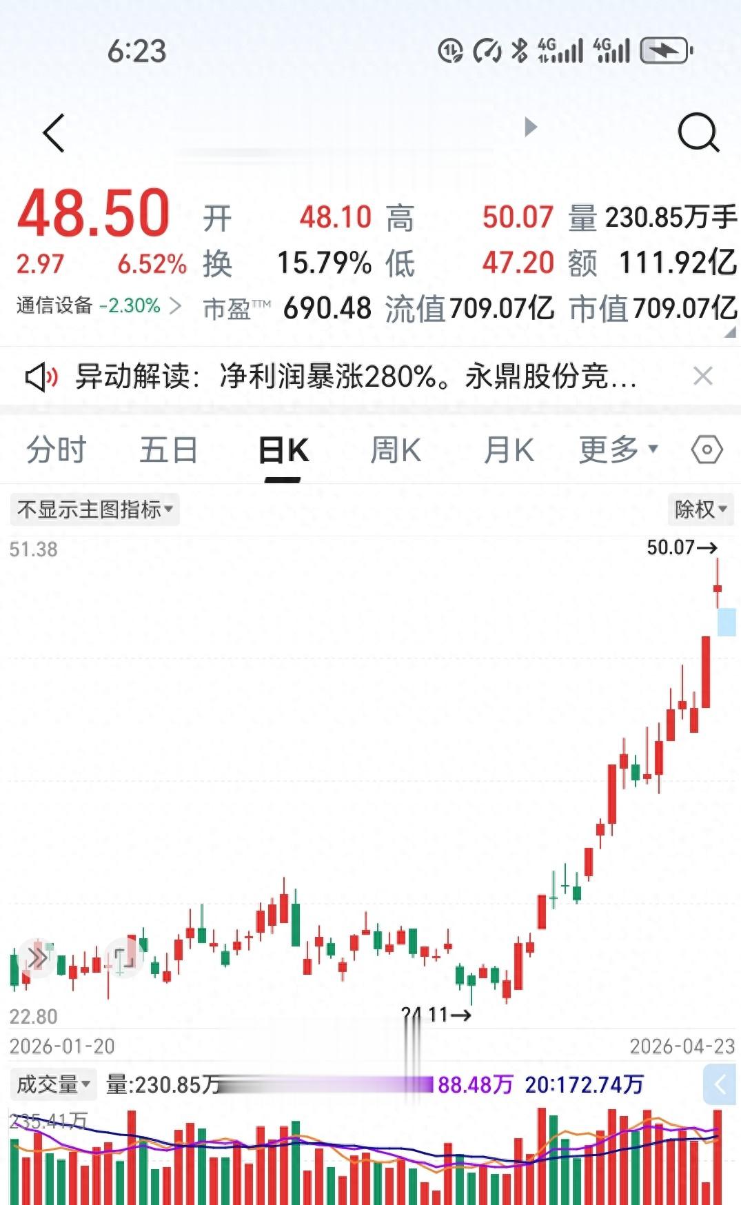 然后呢?收盘你猜多少?48.50元。