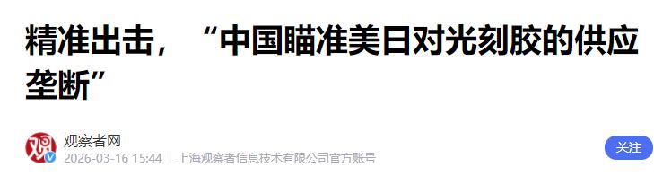 中国被逼到墙角中美科技博弈白热化,日本紧跟美国围堵,高端光刻胶早就成了卡脖子重灾区。