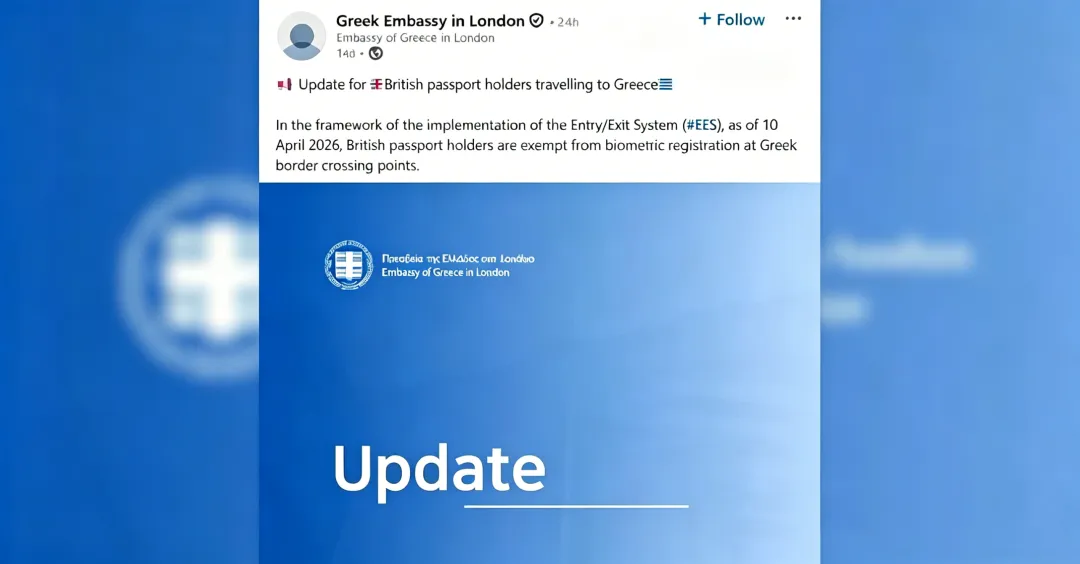 希腊驻伦敦大使馆官网发布公告称:“作为EES系统实施的一部分,自2026年4月10日起,英国护照持有人在希腊边境口岸免于生物识别登记。”不过,官方暂未说明这项豁免政策将持续多久。