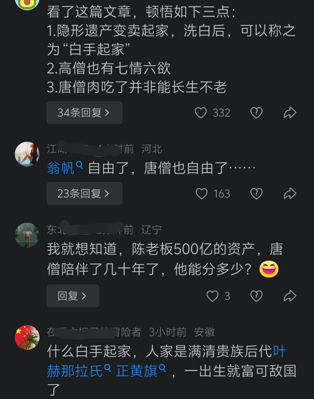 然而,陈丽华去世后,很多人的留言中却抱着一种看笑话的感觉,甚至连对迟重瑞的留言也如此。