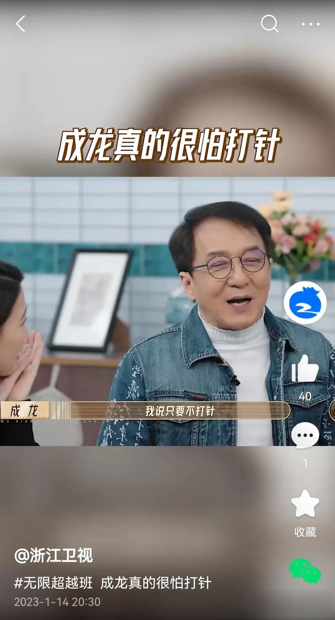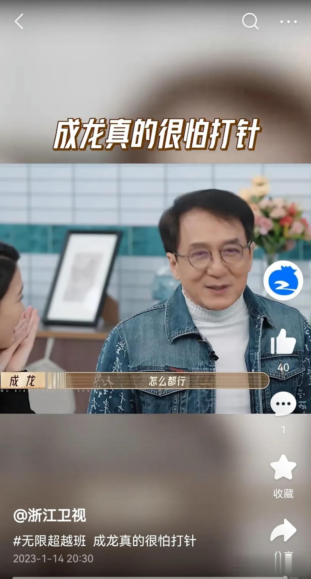 “只要不打针怎么都行”成龙大哥在无线超越班中说到。 不过说真的,成龙竟然怕打针……这事儿还真叫人意外。 成龙大哥如此硬汉,年轻时候拍起电影来,天不怕,地不怕。怎么危险怎么来,身体上也是各种大大小小的伤病与骨折。 电影中也经常是车说撞就撞,楼说蹦就蹦,连飞机也说跳就跳,热气球、火山、冰湖等。 如此硬汉竟然怕打针。 这就有点,可爱了[捂脸] ………… 但是在想一想吧,其实每个人,好像都有一些在旁人眼中,极其渺小或者根本不在意的事或物,自己却很难接受或者压根接受不了。 就比如我,我就真的受不了泡沫的摩擦声,一听就浑身不对劲[捂脸]