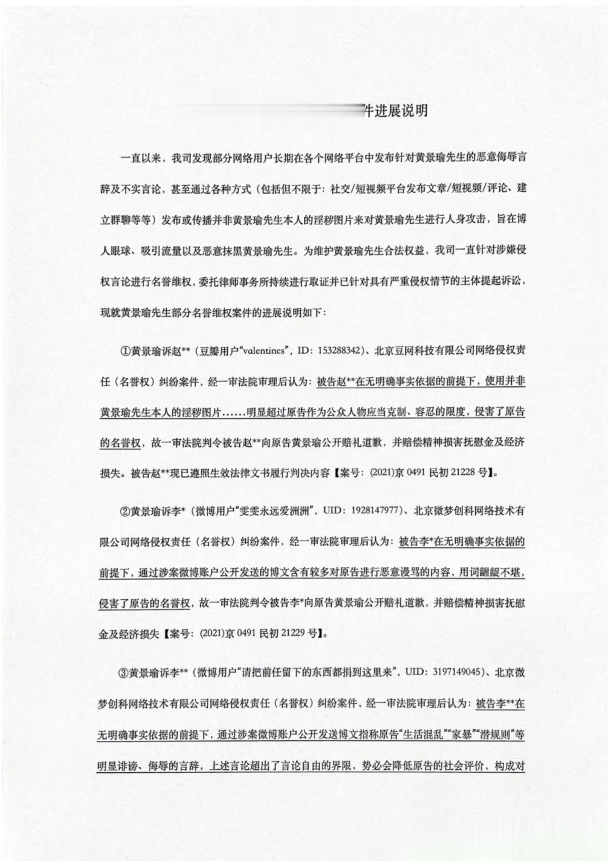 黄景瑜工作室发出声明:针对此次的造谣事件,已再次委托律师取证、备诉,绝不姑息。