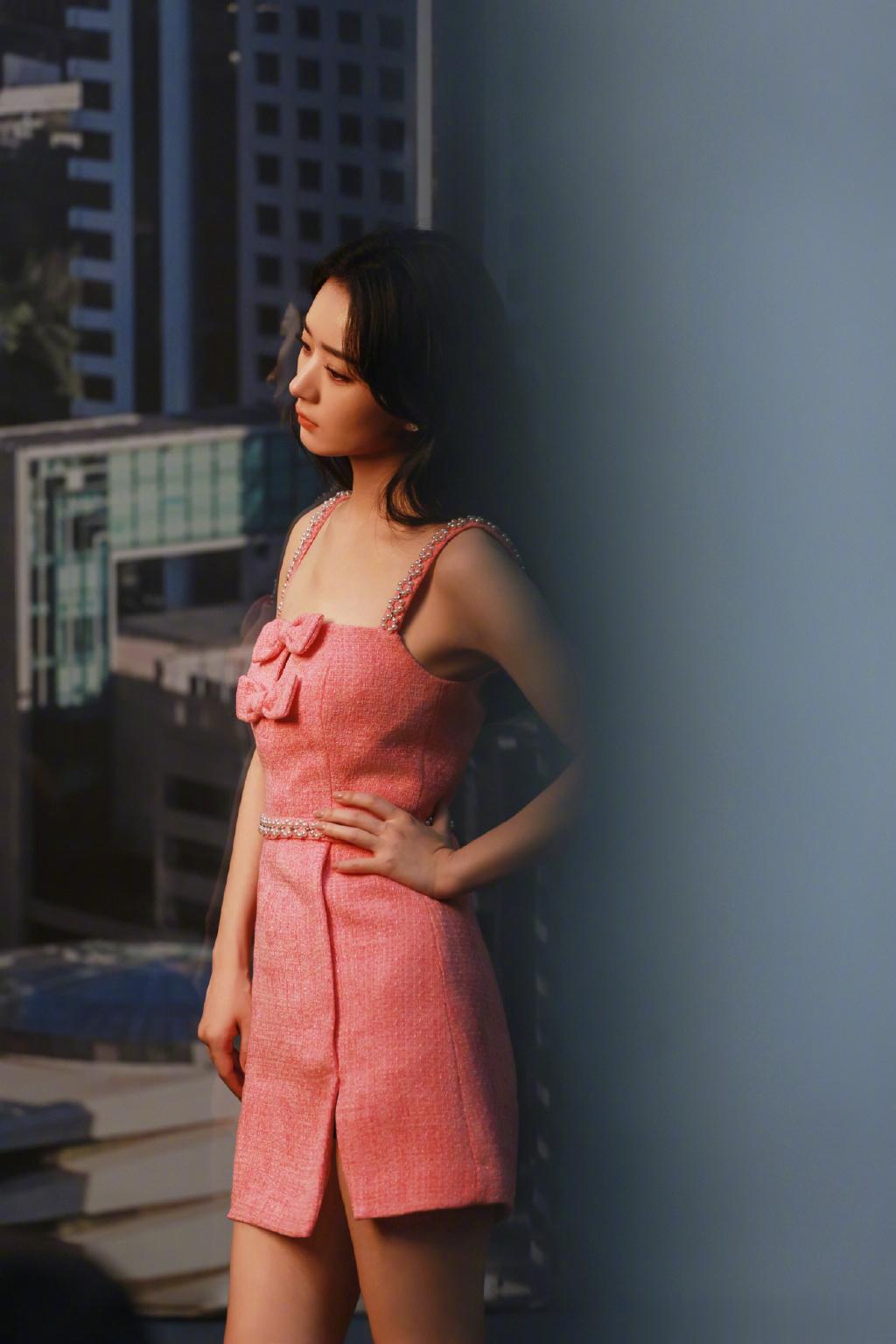 #赵丽颖蝴蝶结开衩吊带裙#赵丽颖新造型大片释出,桃红色蝴蝶结开衩吊带裙,蝴蝶结
