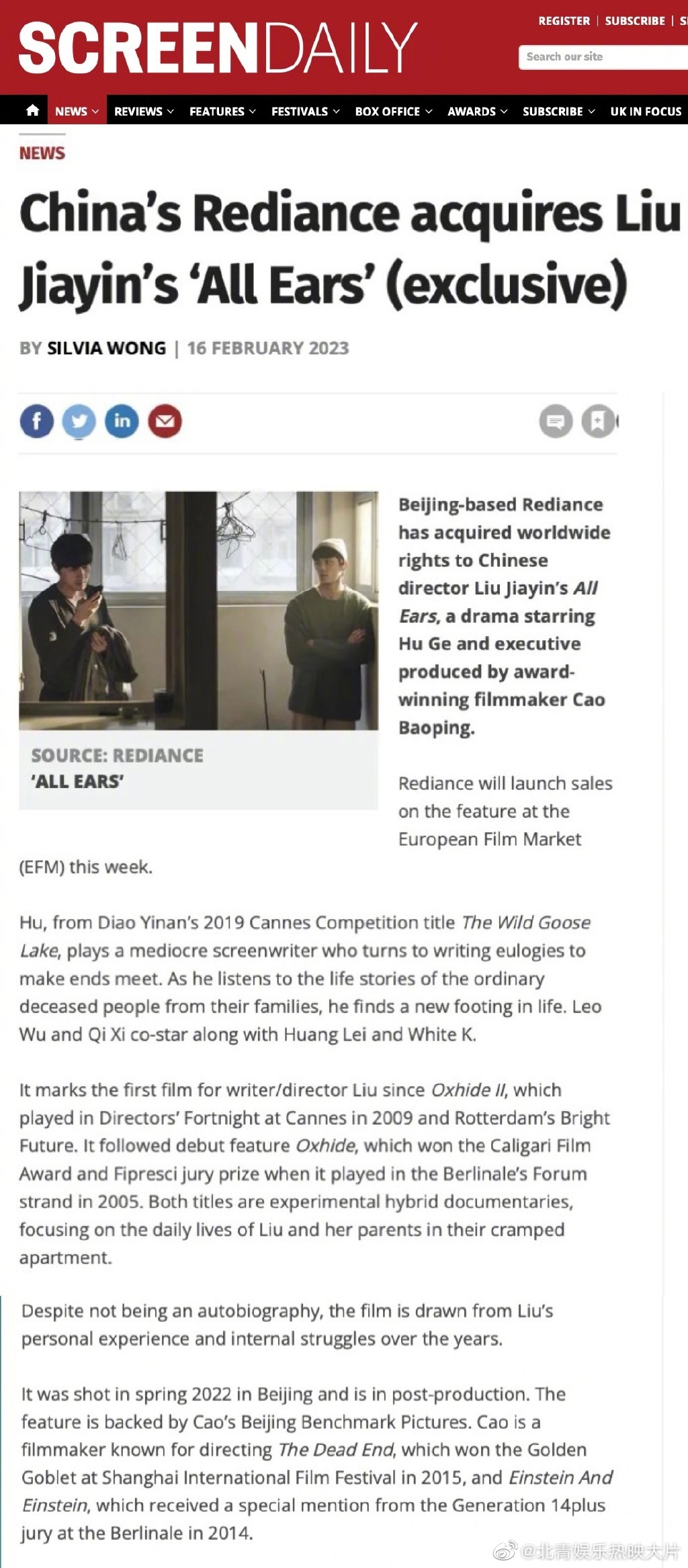 #不虚此行首曝胡歌吴磊双人剧照# 由曹保平监制、刘伽茵编剧执导的电影《不虚此行》亮相第73届柏林国际电影节首日场刊,并首次曝光胡歌吴磊双人剧照。