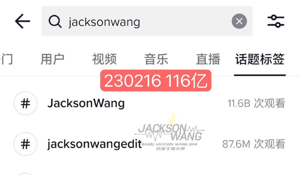 #王嘉尔TikTok播放量华人明星第一# 的TIKTOK最新粉丝数已突破600万,个人话题Jacksonwang播放量也突破116亿为华人明星第一位[打call][打call]