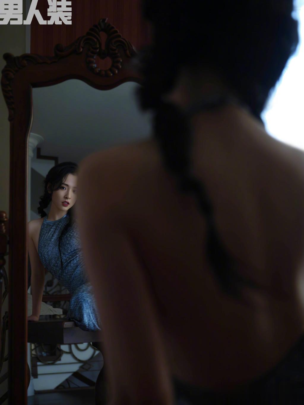 #吴倩黑色吊带造型#吴倩登《男人装》二月刊封面,复古造型率性优雅,充满故事感的