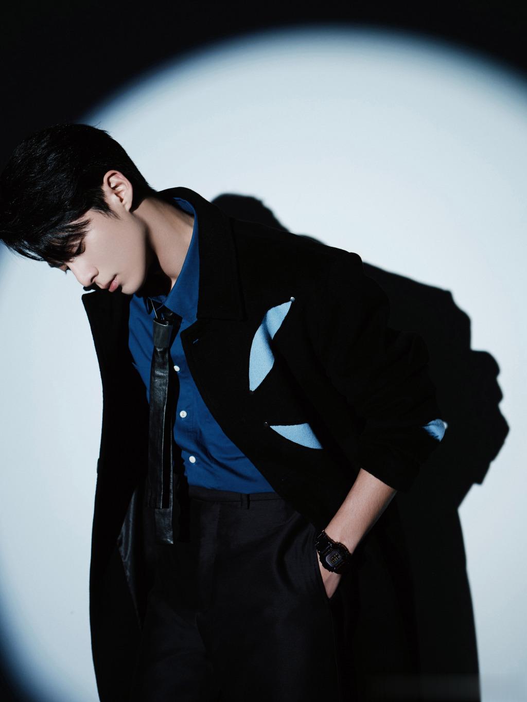 #王鹤棣蓝黑造型暗影大片#王鹤棣最新造型蓝黑暗影大片,暗影夹杂,光影之下气场十足