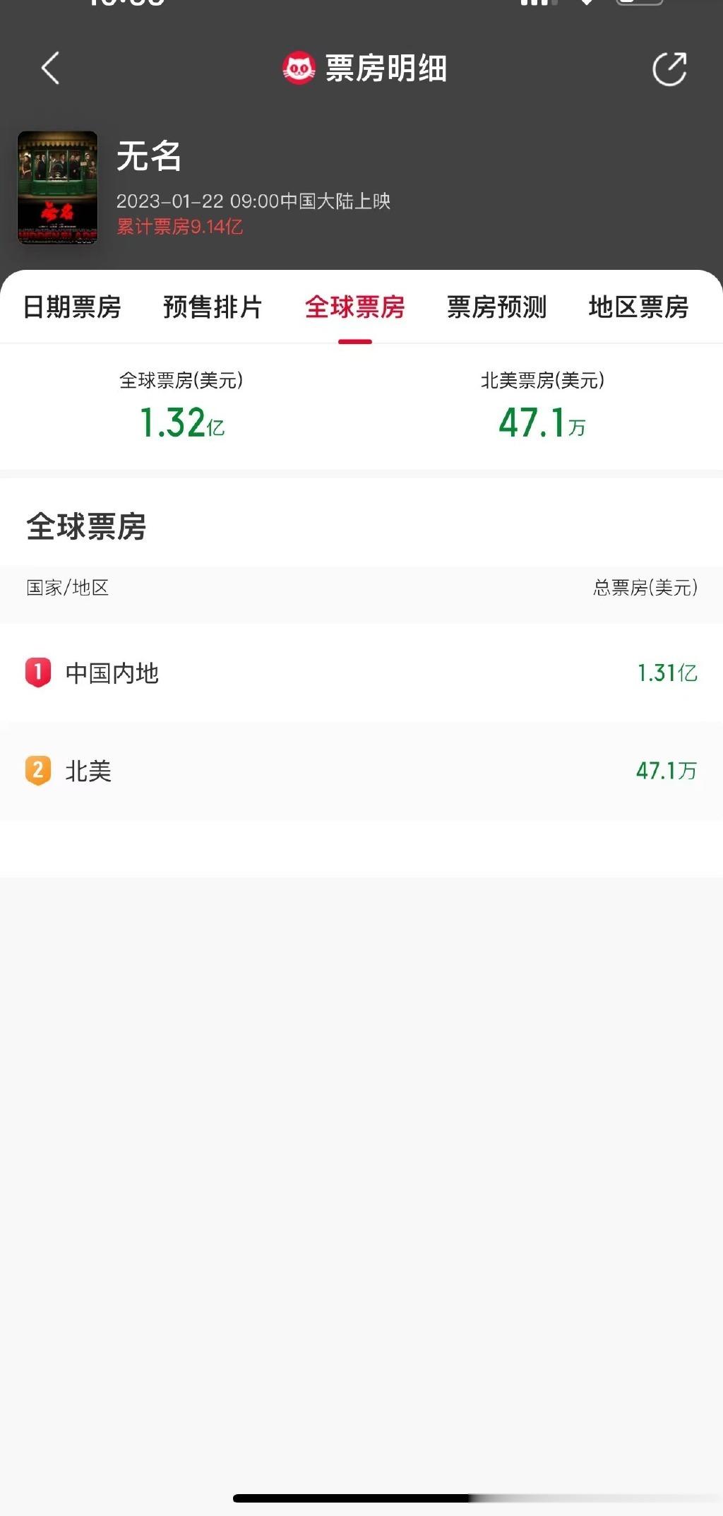 #无名北美票房超47万美元#据猫眼专业版数据显示, 领衔主演电影《无名》北美上映第二周,累计报收票房47.1万美元,截止当前中国大陆累计票房已达9.14亿。#无名北美票房# 也期待王一博五一档的《长空之王》和暑期档的《热烈》[憧憬]