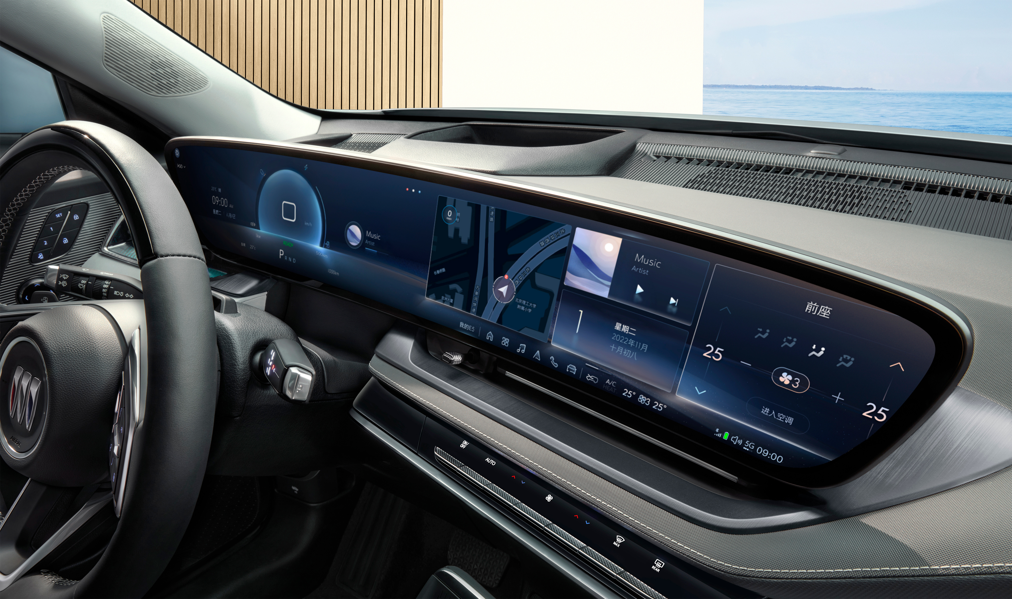 #汽车资讯# 【这是把凯迪用的屏幕倒过来了吗[笑cry]别克Electra E5内饰官图】近日我们从官方获取了别克Electra E5的内饰官图。新车定位为五座纯电SUV,采用新一代别克纯电产品设计语言,搭载了全新一代VCS智能座舱和全新一代Super Cruise超级辅助驾驶系统等。按照此前规划,Electra E5将于一季度正式发布,上半年正式交付。可以看到,新车的内饰整体采用黑白配色,颇具科技感。最受瞩目的当然是30英寸一体弧面6K屏,分辨率高达6008×934,搭配高通骁龙8155芯片,引入5G技术,提供了高效的信息传输和流畅的操作体验,同时支持整车多模块OTA并行刷新。