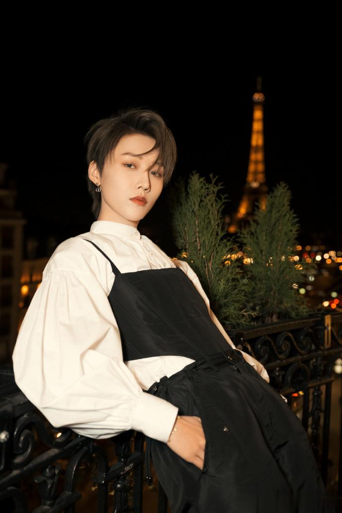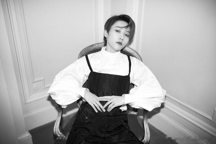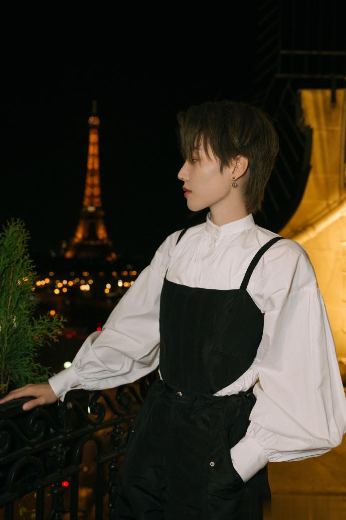 #刘雨昕白衬衫骑士造型#巴黎时装周看秀造型,黑色小马甲搭配白衬衫,精致不失随性