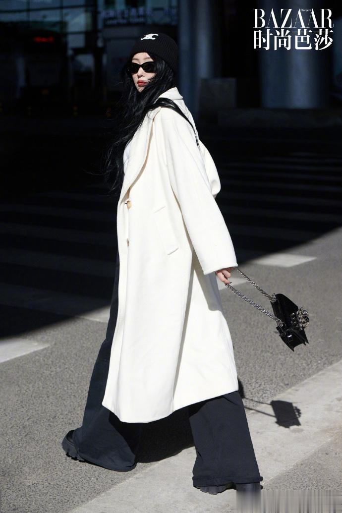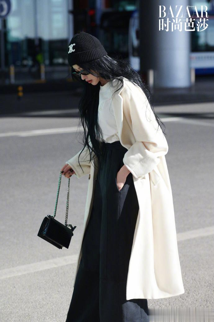 #张天爱出发巴黎时装周机场图# 从北京机场出发前往法国参加巴黎时装周活动,白色大衣搭配黑色针织帽又美又飒~ 期待这次巴黎之旅[打call][打call]