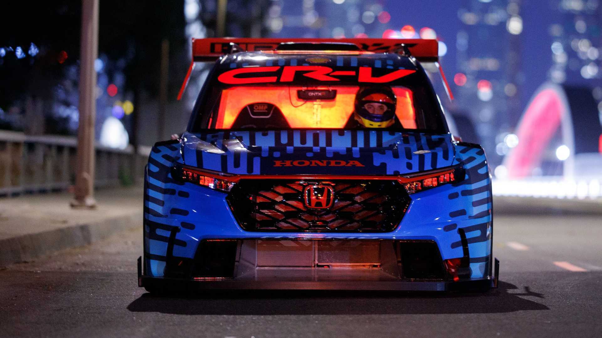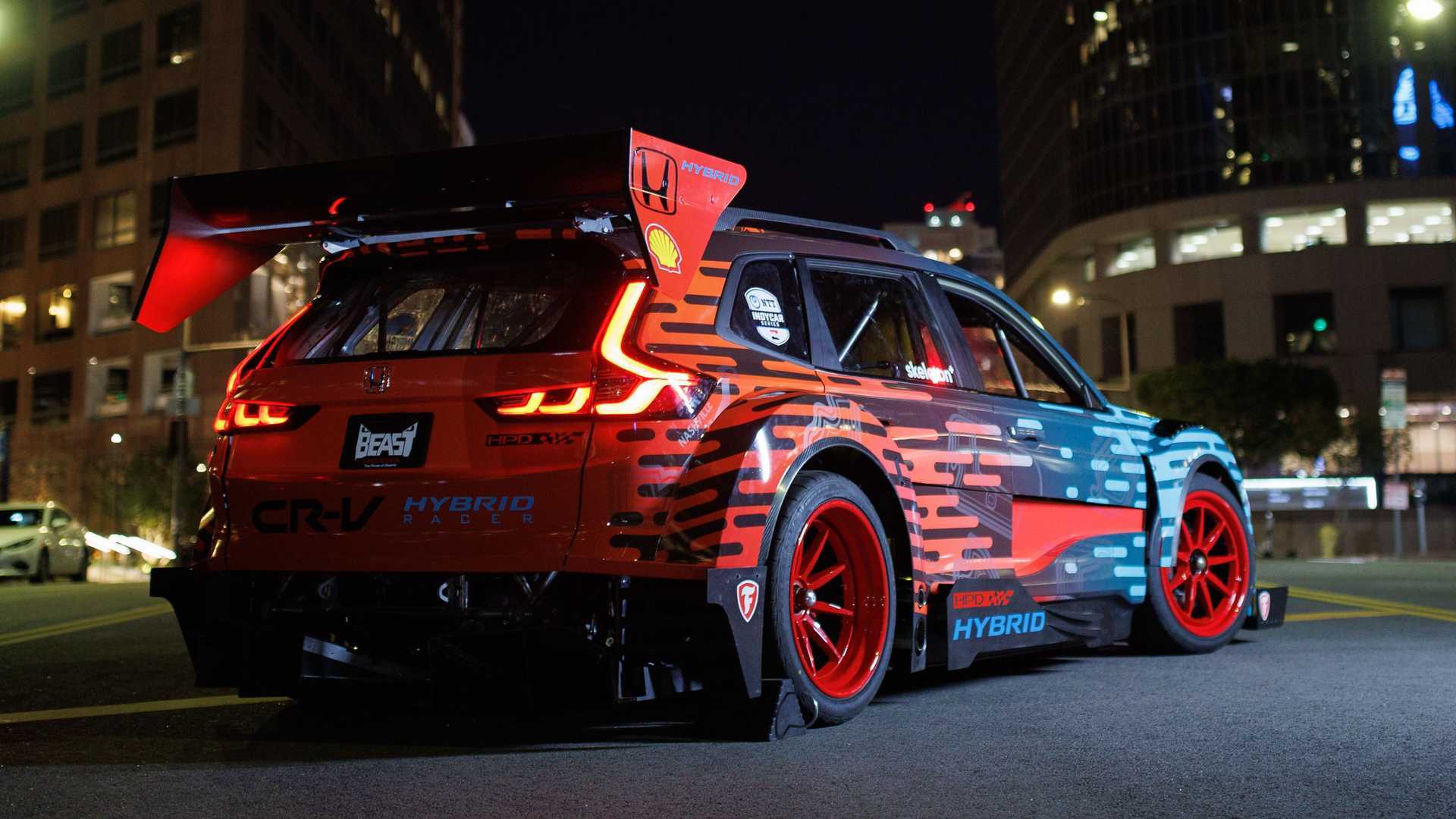 #汽车资讯# 【又在这扮猪吃老虎是吧[doge]#本田CR-V# Hybrid Racer官图】2月28日,本田CR-V Hybrid Racer官图发布,这是一款由本田性能部门、赛车研发中心以及北美汽车设计部门共同打造的一款CR-V混动赛车,令人不可思议的是,它将具有800马力的动力。新车采用宽体的车身设计,外扩的轮眉顶部有鲨鱼鳃样式的轮拱通风槽,车门处也包含了进气口,侧裙还有更为复杂的空气动力学装置,双层复翼加上垂直导风扰流板。新车排气位于后车轮的前侧,采用双出的排气。