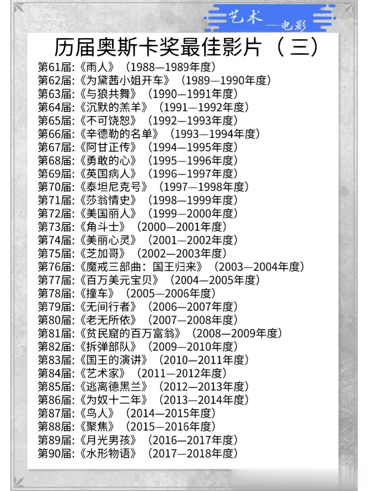历届奥斯卡奖最佳影片,全部收齐了 🐎住!