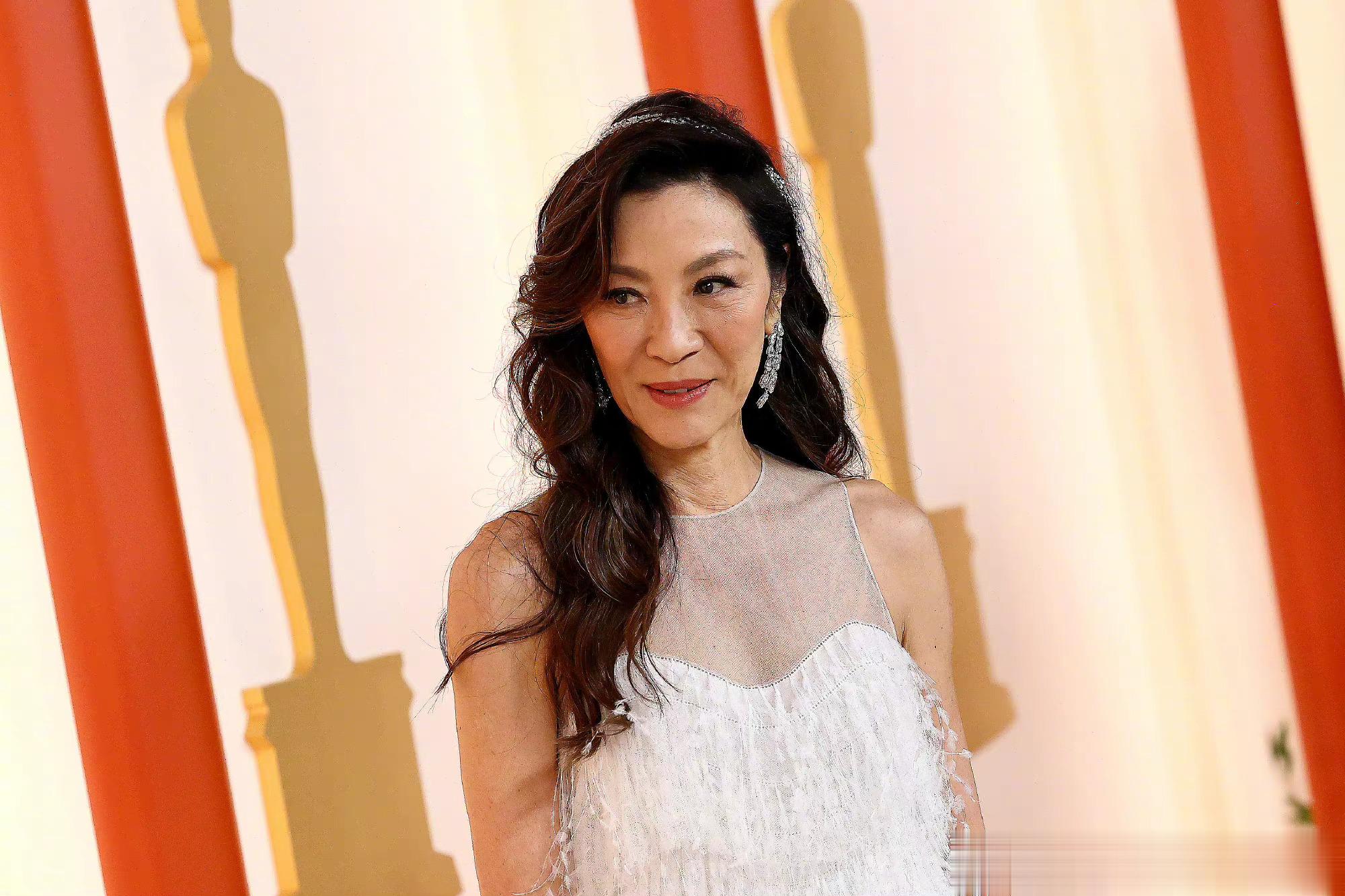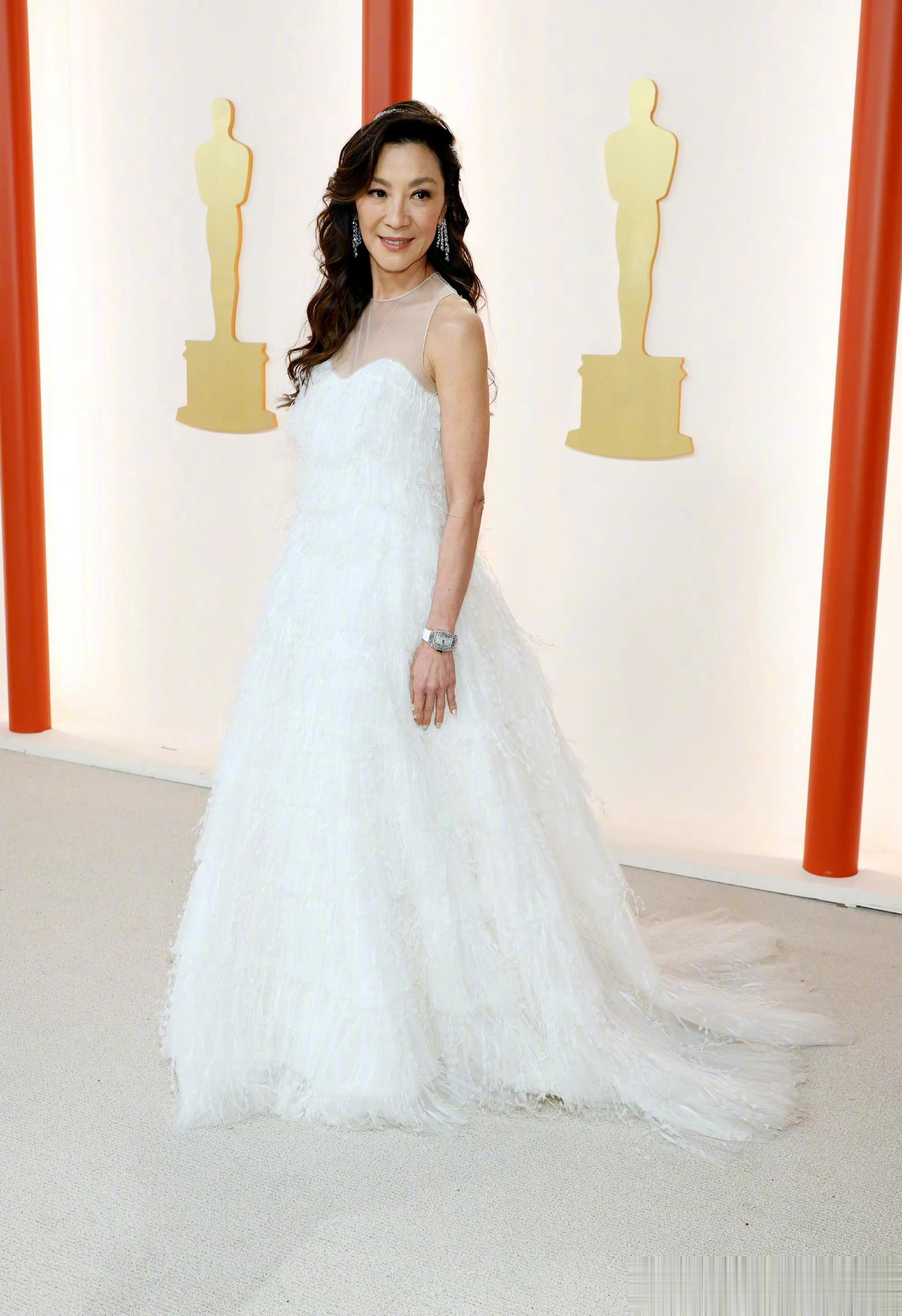 #杨紫琼白裙亮相奥斯卡#杨紫琼奥斯卡红毯造型,白色纱裙很有韵味,状态满分[打call]
