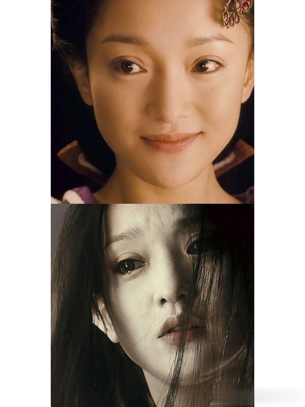 有多少人当年被这一幕惊艳?《画皮》开始时小唯被一群马匪带回山寨,周身裹在一张狐裘里小小的一只,四周都是虎视眈眈的眼睛,步步逼近,她慢慢瑟缩后退着,眼神里却非常从容淡定,直到王生杀入剿灭匪帮,她眼神又变成了懵懂与怯弱,楚楚可怜