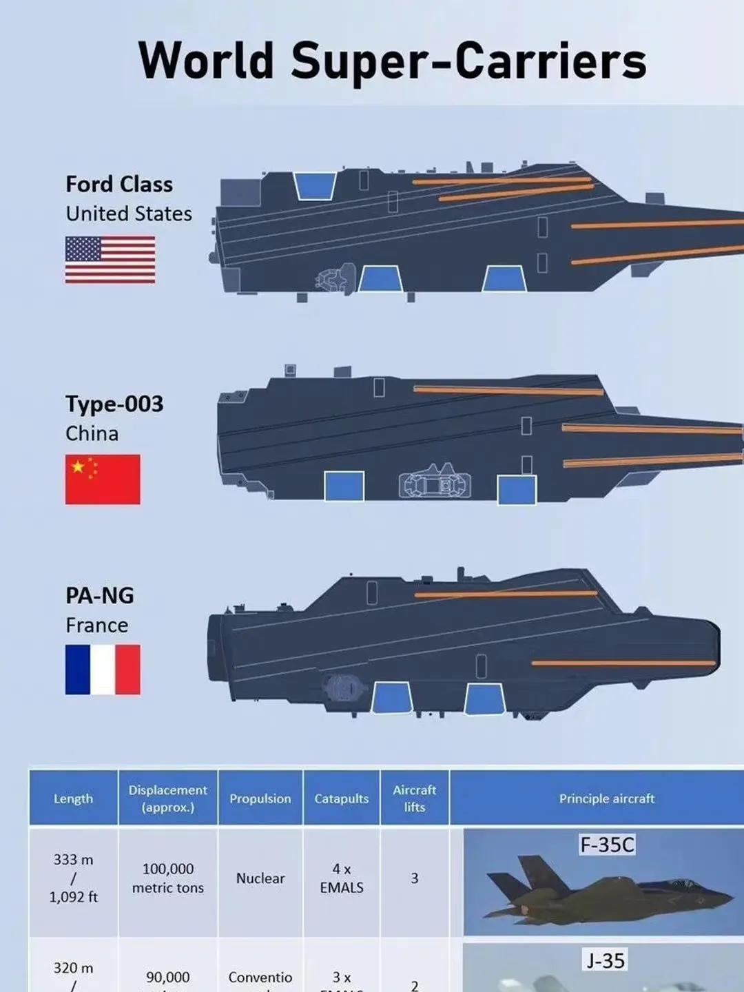 戴高乐的核动力是移植核潜艇的,先天性心脏病…核动力后续肯定会上的,路不是一步一步走的?再说即便 003 不是核动力,也能碾压全球 70%以上的航母…
