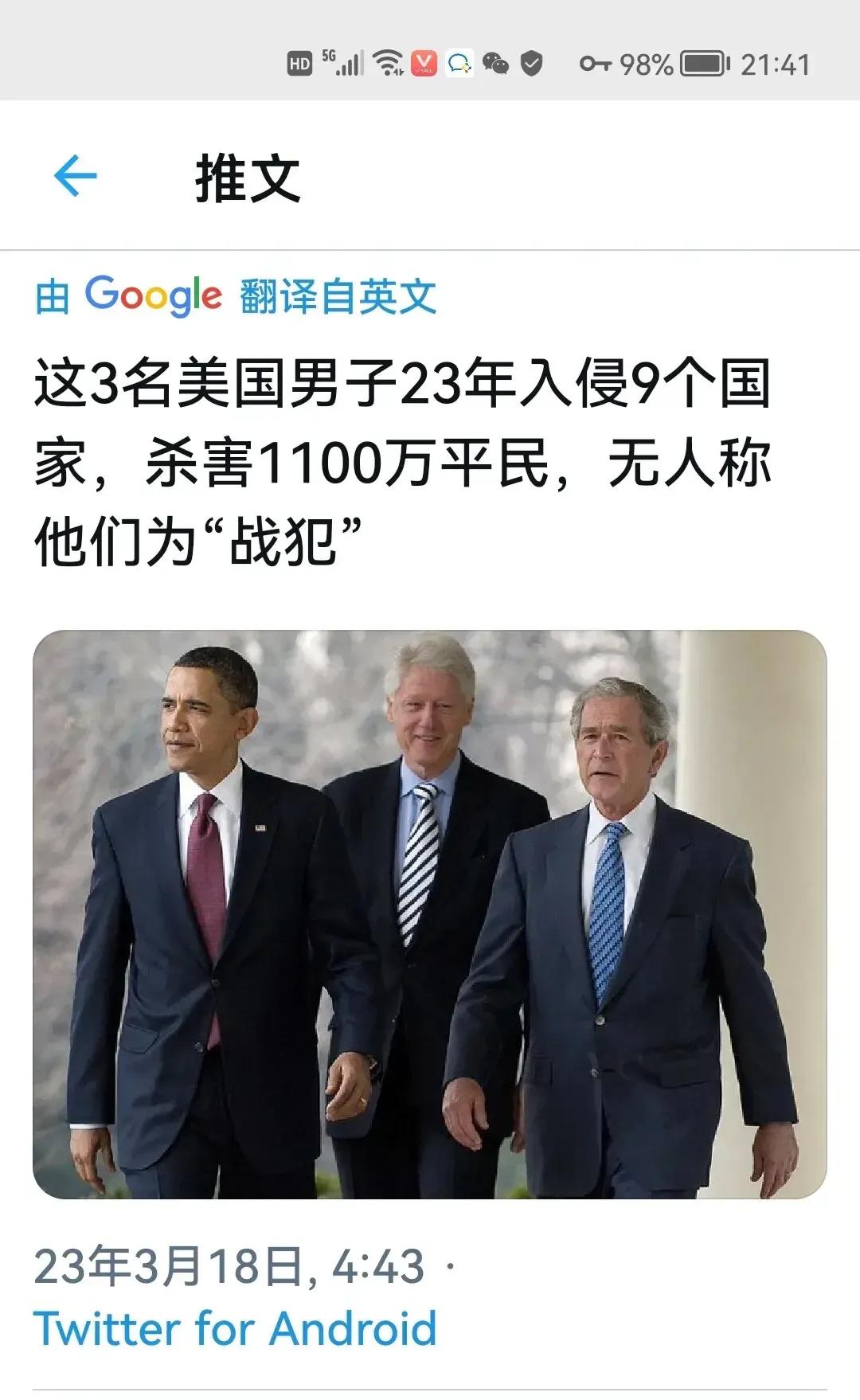 普京在马里乌波尔,快逮住他! 国际刑事法院不是说要逮捕普京吗?那就快点,他正在马里乌波尔呢,还自己在大街上开车呢,这可是你们心中乌克兰的地盘,赶紧行动! 就知道都是一帮怂货!即便他此刻出现在国际刑事法院总部,你们不但不敢抓他,还会吓得连忙用铁链把门锁上!普京这个时候去马里乌波尔就是要羞辱你们,也是督促你们这种机构已经没有存在的必要了!另外也是给在巴赫穆特前线的战士打气,让巴赫穆特尽快收网! 实际上最该抓的是右边这三位,无缘无故发动对阿富汗、利比亚、叙利亚的战争,并且导致1100万平民的丧生,可谓是罪大恶极,但他们现在活的比谁都潇洒,你们也太渎职了!