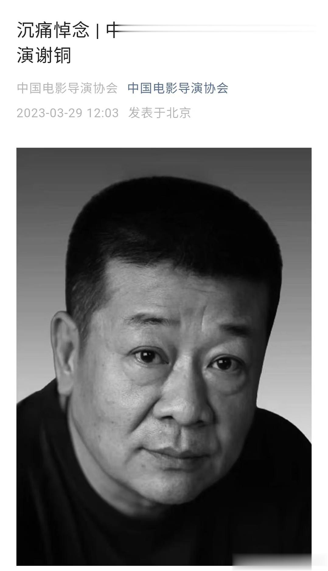#谢铜去世#曾拍摄过《高天厚土》《乒乓小子》《花香岁月》的导演谢铜于3月29日