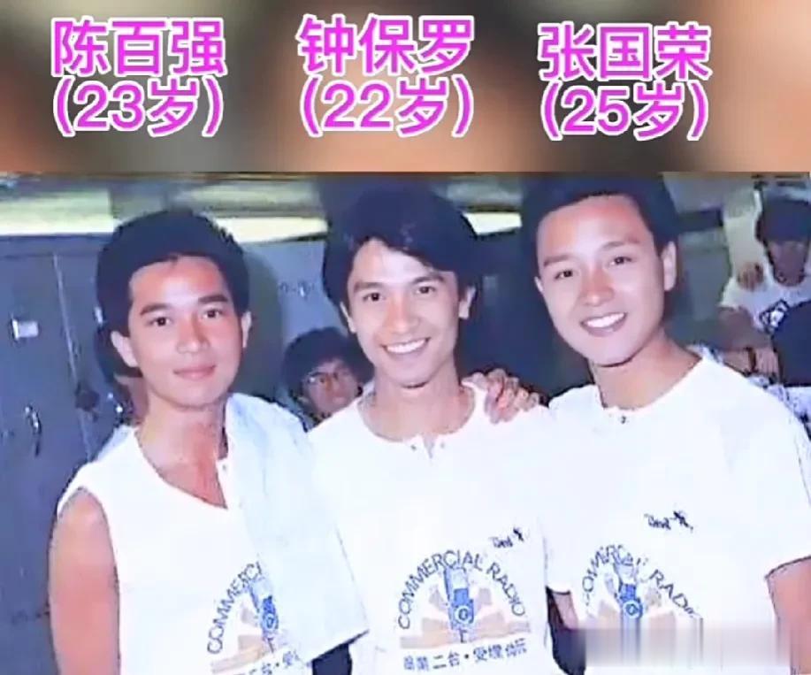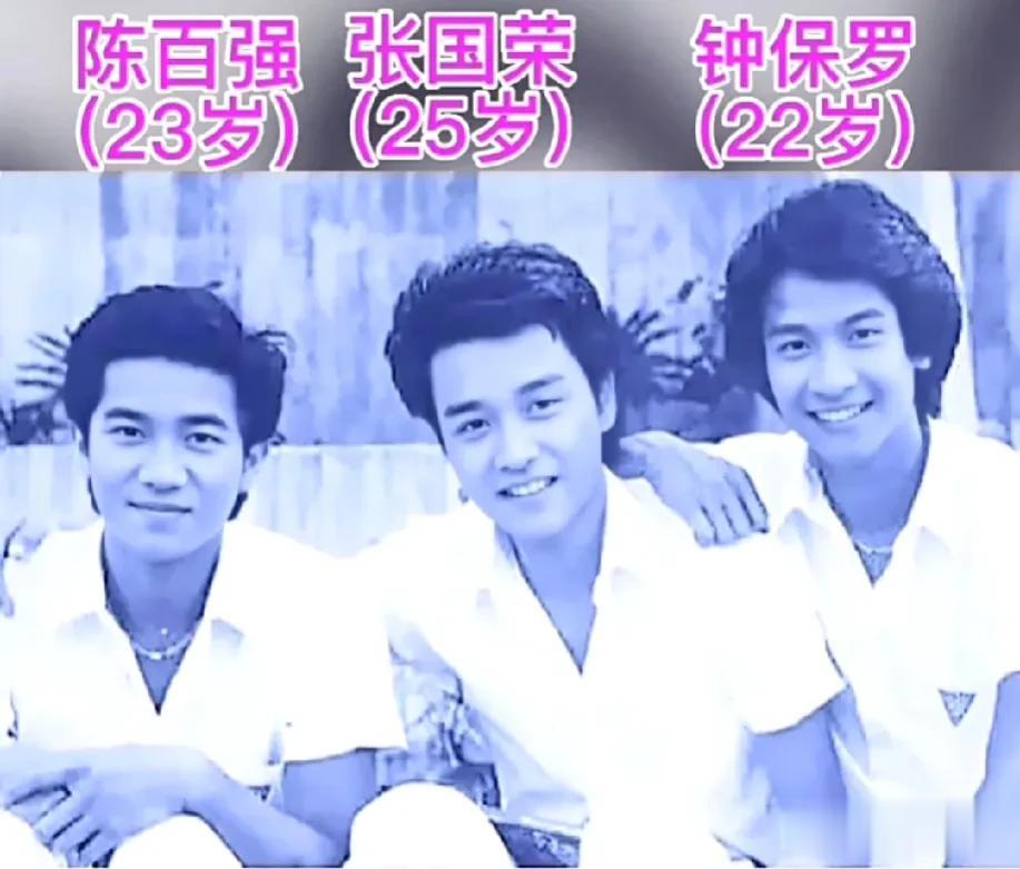 1981年陈百强和张国荣、钟保罗拍摄影片事业生时的合影,三位美少年也因这部电影被