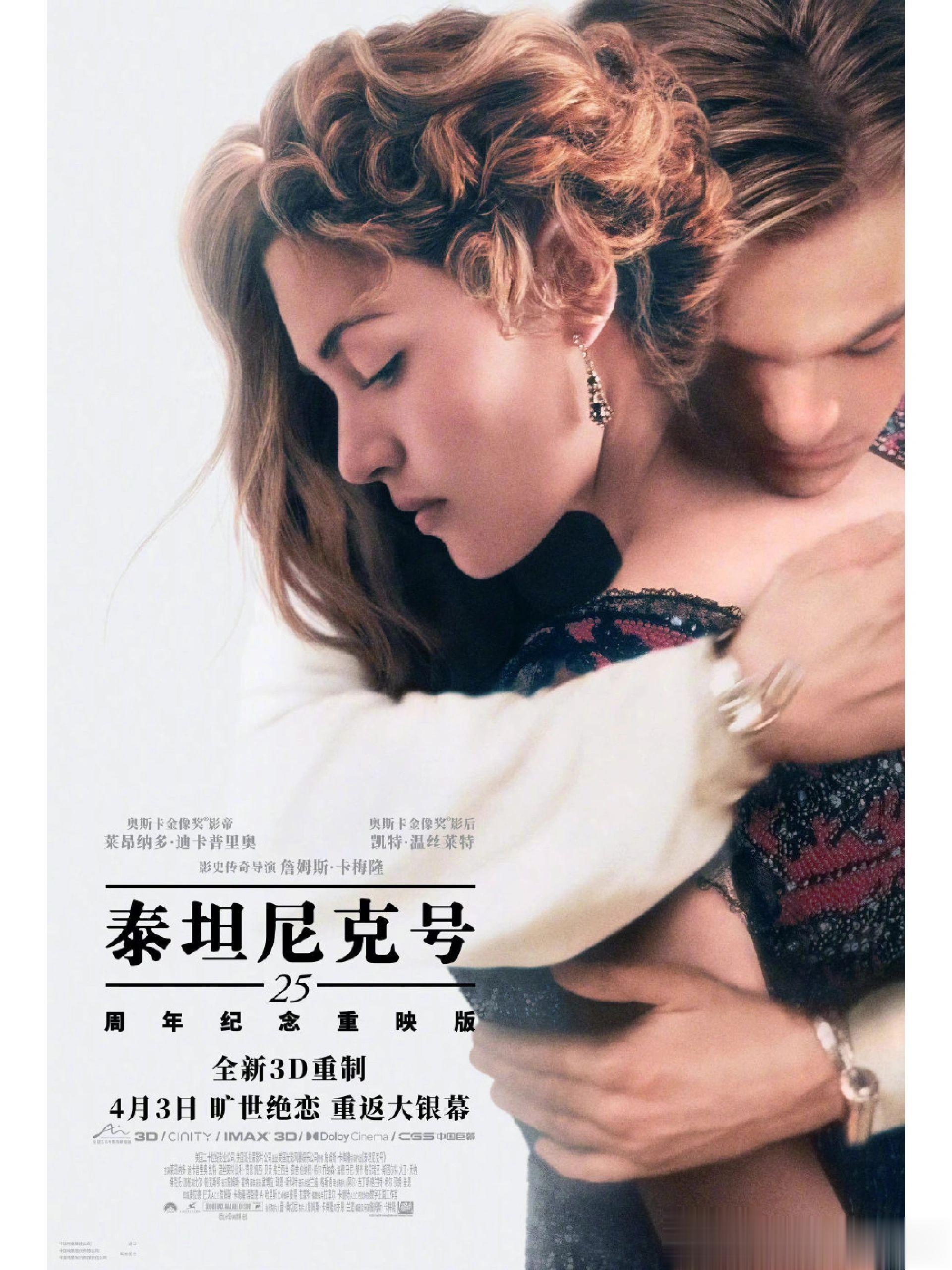 电影《泰坦尼克号》将于4月3日以“25周年纪念重映版”在内地定档,影片以3D、4
