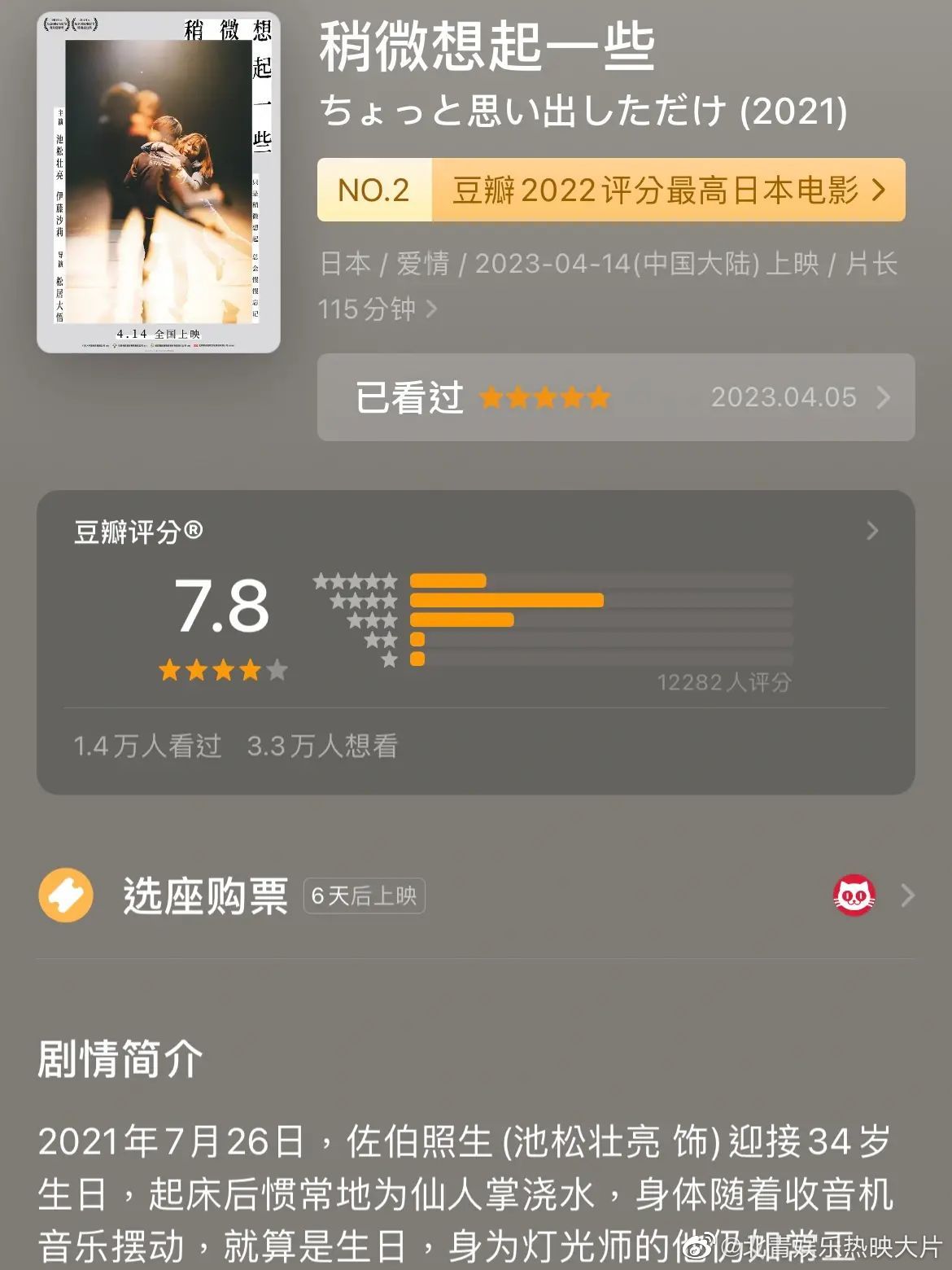 如果说《花束》是恋爱的见证,那《稍微想起一些》就是爱过的证明。失恋过的人、在爱中受过伤的人,一定要看这部日影,be美学yyds!