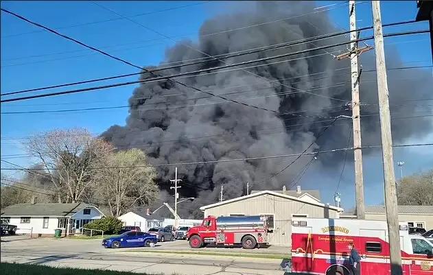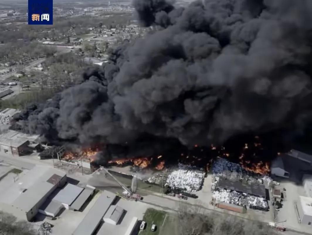 又炸了!美国印第安纳州发生巨大火灾! 刘博士快醒醒,拿好尿壶起来赶紧救火去!看看这满天翻滚直入云霄黑色浓烟,吸进去半条命没了!4月11日,在美国印第安纳州波利斯的一家塑料工厂发生重大火灾,在20公里以外都能看到,火灾还导致巨大的爆炸声,产生的黑色浓烟蔓延周边多个村镇,目前已经有2000多少被疏散! 经过调查,这次事故原因不是烟头,而是由于一辆牵引拖车的卡车着火,进而点燃了周边存放的塑料和各种垃圾,最后导致塑料厂房燃烧起火!
