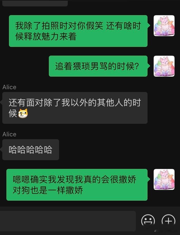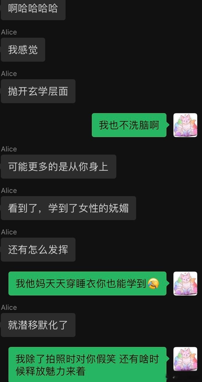 朋友说从我身上看到了、学到了女性的妩媚、还有怎么去发挥,所以现在她自己找到了让自己更惊喜的一种状态——突然间的柔和、有女人味儿了,我真的万分惊喜,也特别开心!!!我突然觉得自己超爱撒娇耍痴的天性也没有多羞耻。
