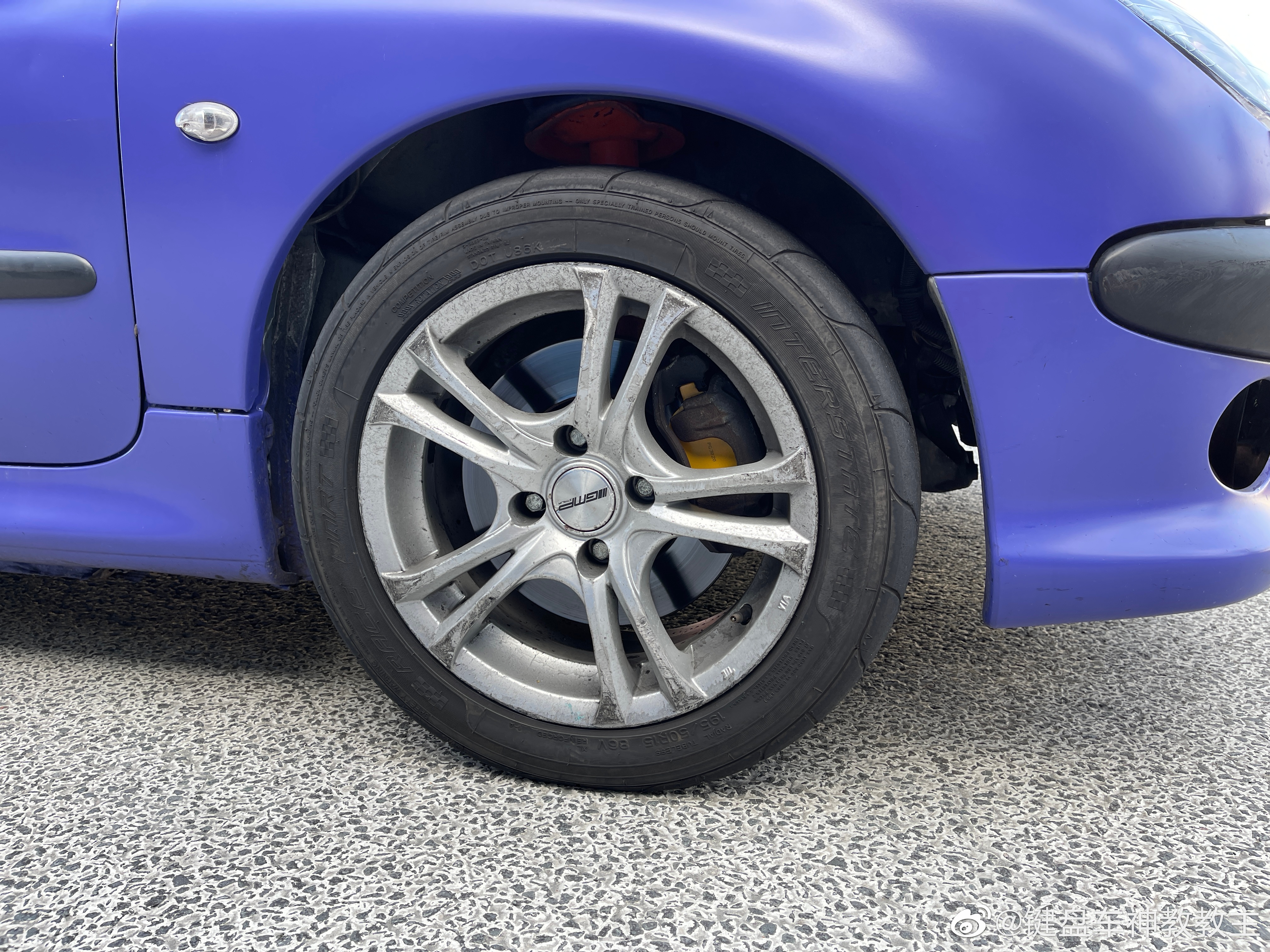 然后看了眼轮胎, 小锤e30是R胎之耻东洋R888R,堂主206用的是杯赛的R胎,我的胎是...山东海福莱,淘宝329一条。
