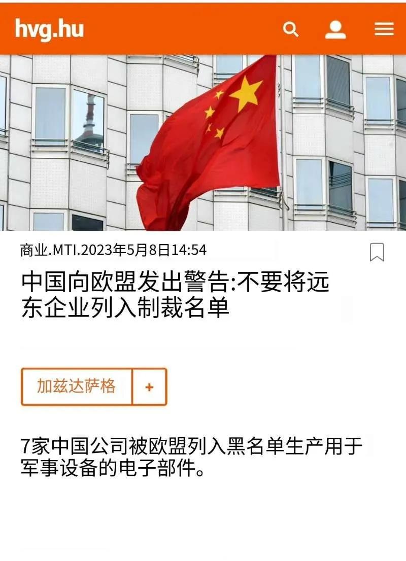 欧盟要对7家中国企业实施制裁,这7家中国企业被欧盟认定出售给俄罗斯可用于生产军事设备的电子部件。欧盟在对华政策方面依然跟随美国,缺乏独立自主的外交政策,对此我外交部表示将采取必要措施维护中国企业的正当权益。