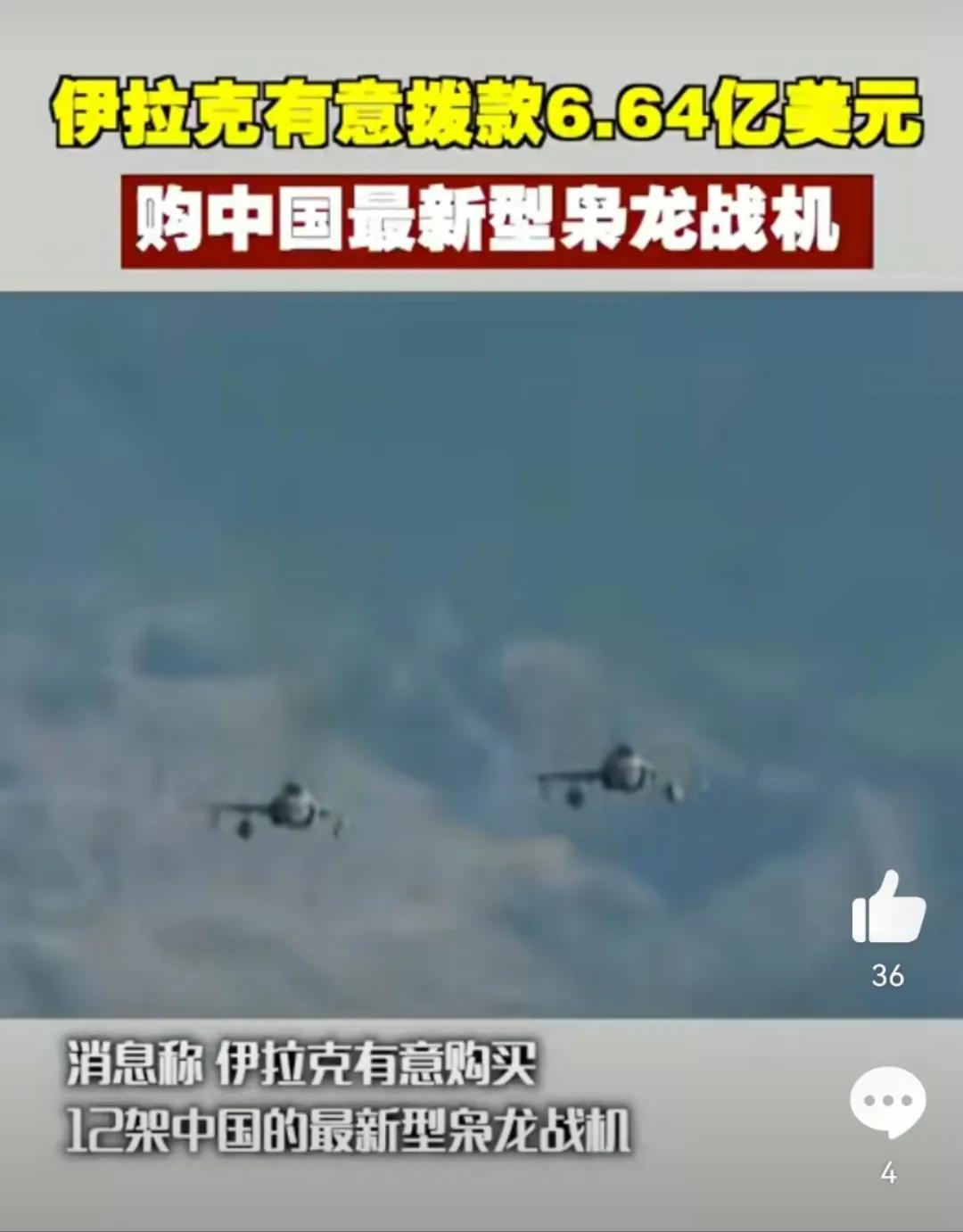 中国战机出口又有好消息,这次是枭龙战机。据外媒报道,伊拉克有意拨款6.64亿美元采购中国最新型枭龙战机和配套设施。根据枭龙Block3战机的采购价来看,伊拉克购买的数量估计是12架。