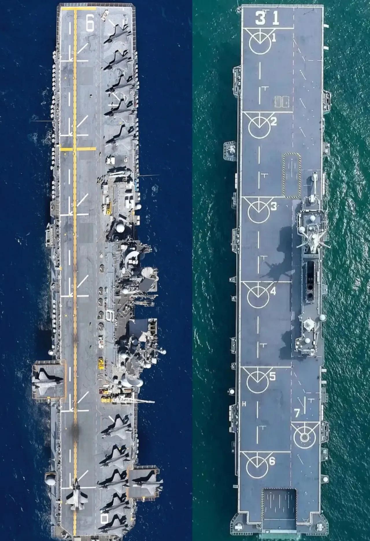 中美两国4万吨级两栖攻击舰对比。可以看出中国的075型两栖攻击舰和美国的美国级相比,还在一定差距。这个差距有先天条件的不足,比如舰载机,技术等。也有设计理念和设计经验的欠缺。总体来说作为一艘排水量已经超过4万吨的两栖攻击舰,075的战斗力还是没有达到应该有的水平。希望接下来的076型能有一个全方面的提升。
