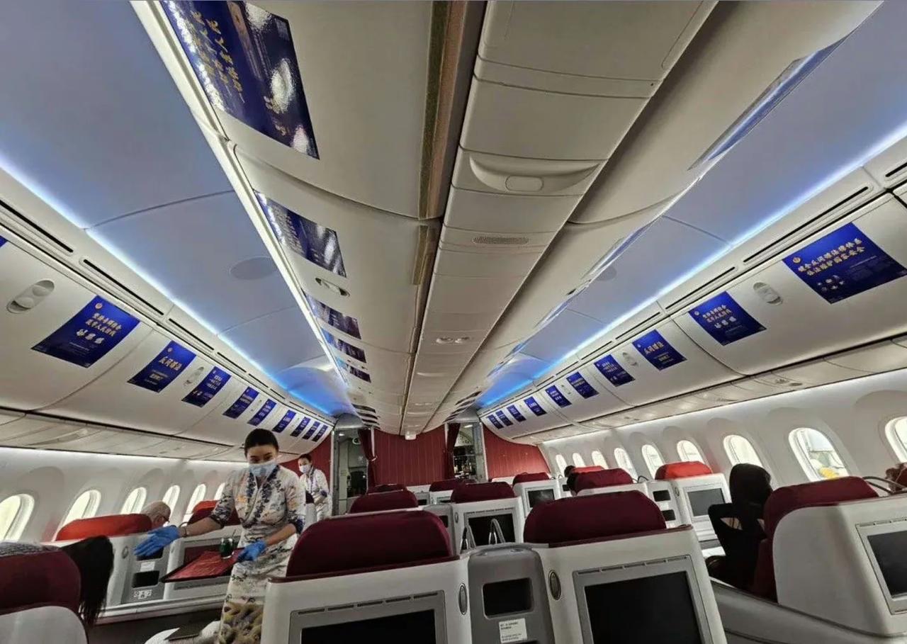 想出这一招的绝对对心理学研究很透了,从美国飞中国几十个小时对着这些标语,心理肯定会产生变化的