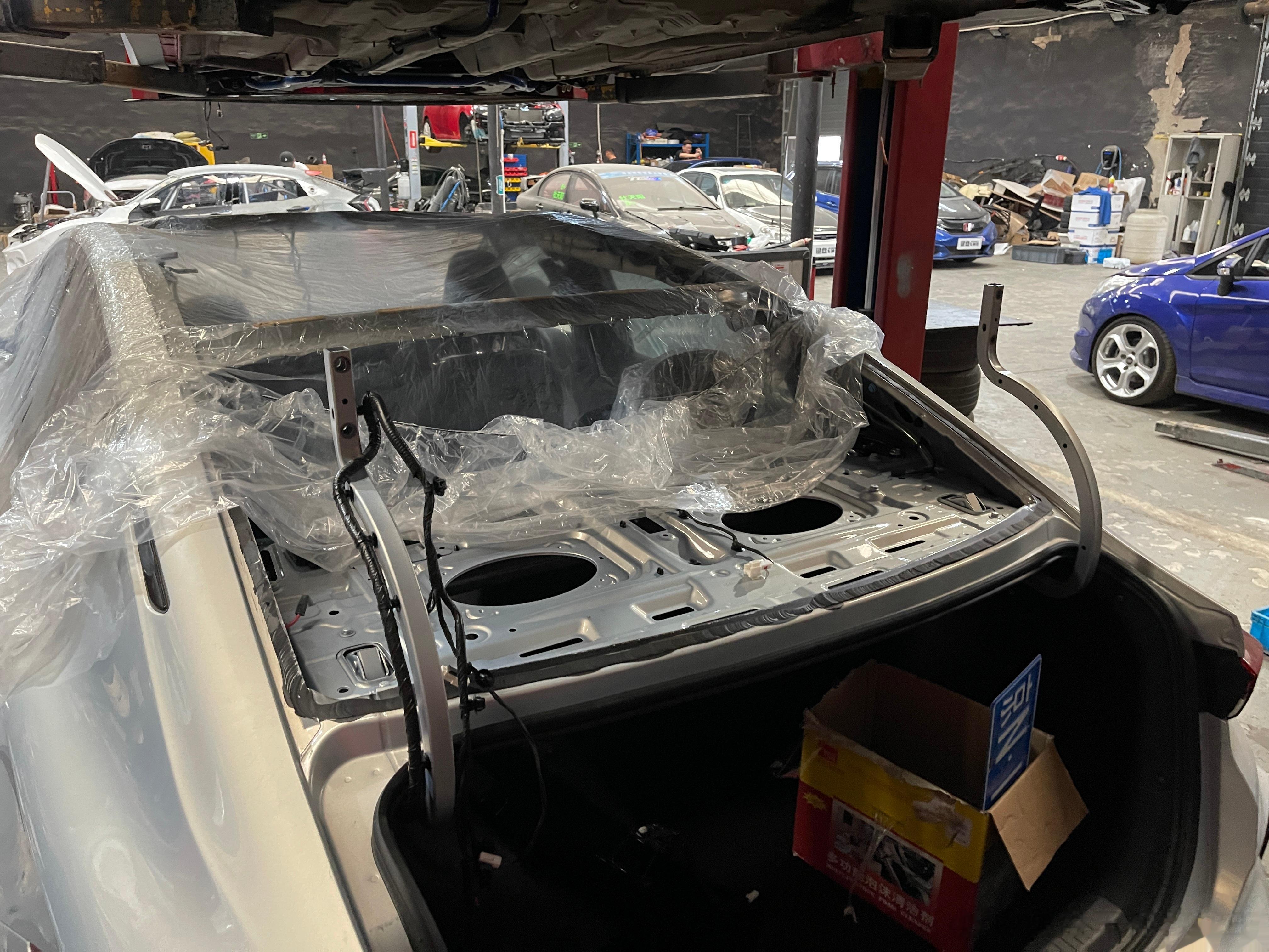 豹子现状,碳三样的进度太慢了。最终的全部改装内容为:新手四件套➕碳三样➕双冷➕LSD。改完后的样子应该非常接近原厂的样子。
