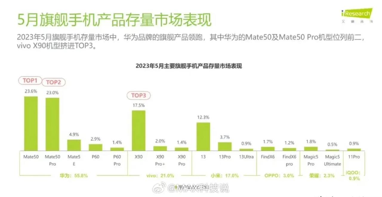 一份安卓旗舰机存量数据,华为Mate50 系列销量比小米13 系列好这么多,vivo X90 销量也比小米 13 好。 不过这份数据准确度不知道有几分?我觉得不准,但很多人都认为小米 13 系列销量第一,更离谱。[吐舌]