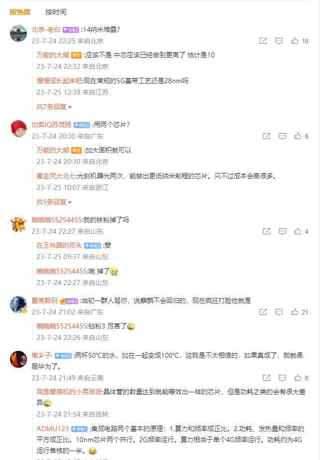 “两杯50℃的水加起来100℃”,这是几年前很多人用来嘲讽华为芯片堆叠技术,但现在来看可能是真的了。[尬笑] 麒麟芯片虽然回归,但不是旗舰芯片,那么最有可能就是Nova系列首发,然后Mate60e等产品也搭载。Mate60、Mate60 Pro等依然用高通芯片。 其实只要能量产起来,做高端也是时间问题,第一步总是最难的,后续只要能赚钱就能发展起来。 而且最为期待的是,有没有可能其他厂商也能用国产芯片?比如荣耀,OV等厂商,那就很有意思了。[吃瓜群众]