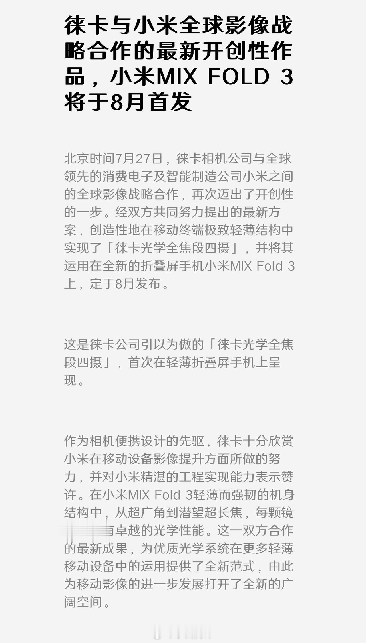 小米不仅在直板机上完成了影像的全面蜕变,这次要把旗舰级影像体验带到折叠屏上了,在轻薄和影像之间,小米选择了全都要,这对于用户来说当然是一个好消息,期待小米MIX Fold3早日发布