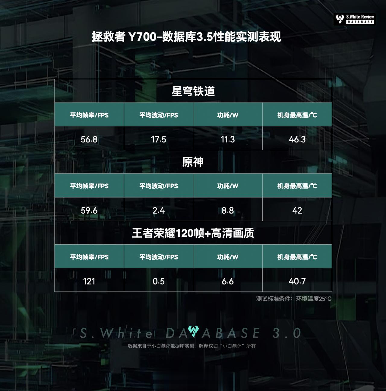 你平时用平板玩游戏吗?[呆无辜]数据库实测 拯救者 Y700 性能表现(测评视频👉🏻) 1、《星穹铁道》数据库3.5测试:平均帧率 56.8 FPS,功耗 11.3 W,机身最高 46.3 ℃,测试到结束亮度能到测试标准的 350 nit。 2、《原神》数据库3.5测试:平均帧率 59.6FPS,功耗 8.8 W,机身最高 42 ℃; 3、《王者荣耀》120帧+高清画质:平均帧率 121 FPS,功耗 6.6 W,机身最高 40.7 ℃; 测试标准条件:环境温25℃±0.5℃,屏幕亮度350nit,声音50%,性能模式。(数据基于 拯救者 Y700 测试时最新版 ZUi 15.0.502 系统测试)