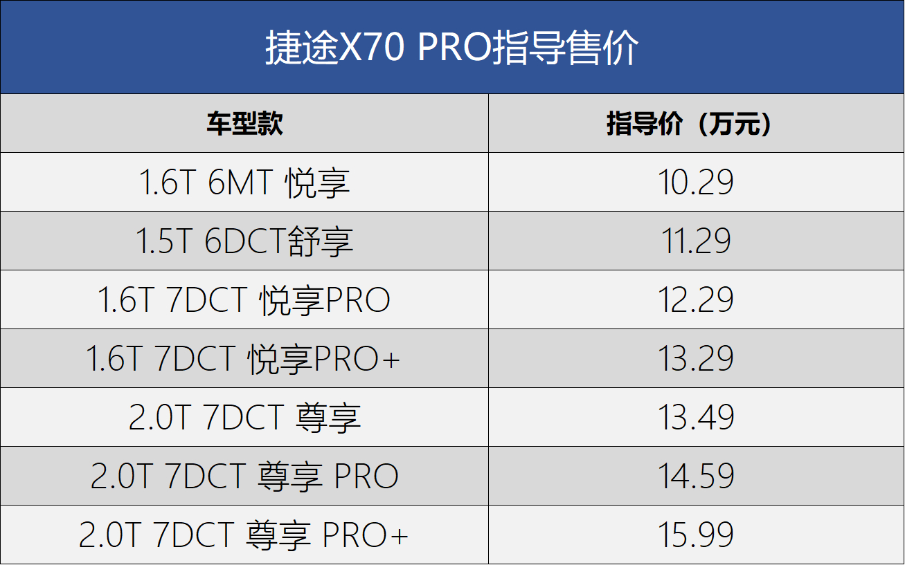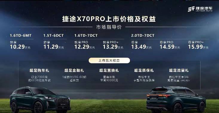 #汽车资讯#【售价10.29-15.99万元 捷途X70 PRO正式上市】新车共推出7款车型,售价10.29-15.99万元。作为捷途X70阵容中的新成员,捷途X70 PRO在外观和内饰方面采用了新的设计风格,并且提供搭载1.5T、1.6T或2.0T发动机的车型。详情: